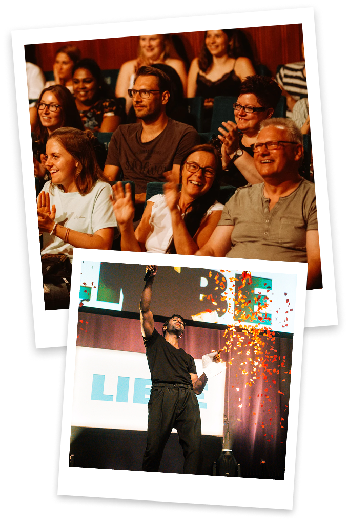 Du erlebst einen Abend voller Lachen, Inspiration und Gänsehautmomente.